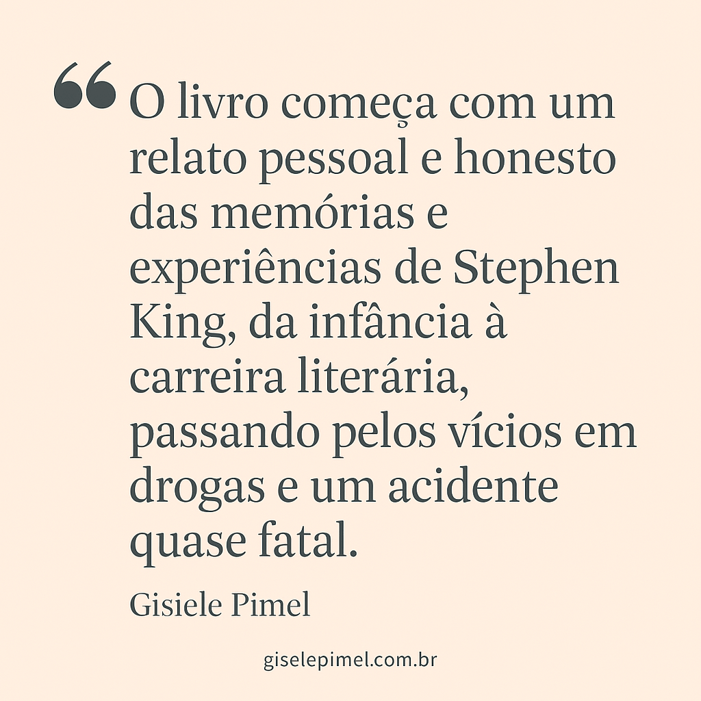 Não sei você, mas eu cresci achando que Stephen King era aquele escritor sombrio que escrevia livros que viravam filmes assustadores — e que provavelmente morava numa casa com luz baixa e máquina de escrever antiga. Mas o que descobri lendo “Sobre a Escrita” é que ele é, antes de tudo, um contador de histórias.