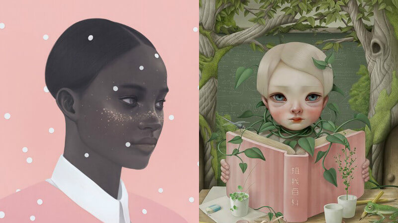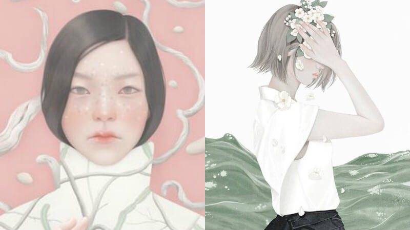 Há cerca de 5 anos hsiak-Ron é uma ilustradora Freelancer. Atualmente a tailandesa tem seu foco volrao para retratos expressivos e rostos de pessoas. A sua paleta de cores possui muito rosa, azul e amarelo em tons pasteis. Seu trabalho delicado e com toque de fantasia fazem com que ela tenha ganhado seu lugar na decoração moderna.