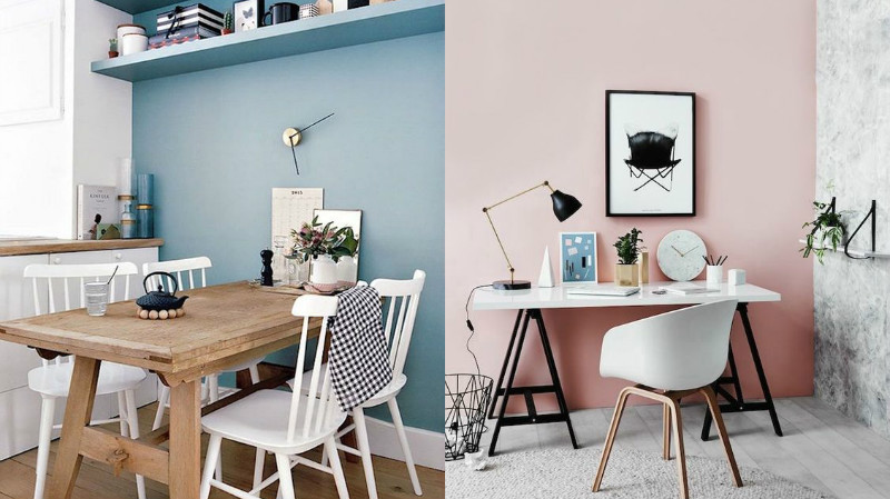 Agora, podemos encontrar a presença das cores nas paredes. Amei a elegância, e o toque charmoso que trouxe para os ambientes. Não é necessário uma troca louca de móveis e ainda assim se está com as cores tendência. Confesso que me apaixonei por esse home office com a parede rose.