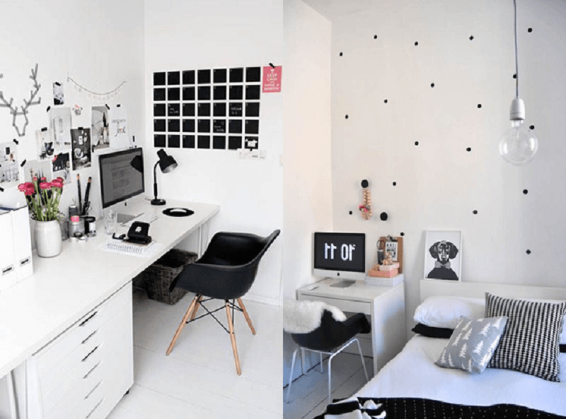 É o mesmo conceito da moda, se você usar cor cor, estampa estampa, talvez não fique muito legal, mas se você intercalar as duas o resultado é ótimo. Na decoração P & B, obviamente as duas cores princiapis são o preto e o branco, mas o cinza é muito presente também. Depois, para dar um “ar de vida”, colocamos objetos de decoração com cores que conversem entre si. Pronto, temos uma linda decoração.