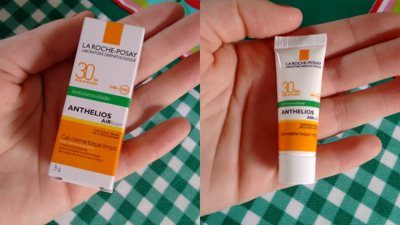 Oi gente, tudo certo? Hoje trago uma resenha do protetor solar Anthelios Aircium. Recebi uma amostra de 3g do site “Clube dos Testadores” para experimentar. Consegui usar três vezes o produto. Ele veio bem embalado e em uma caixa onde o slogan diz “Só quem tem pele oleosa sabe da batalha para controlar o brilho ao longo do dia”.